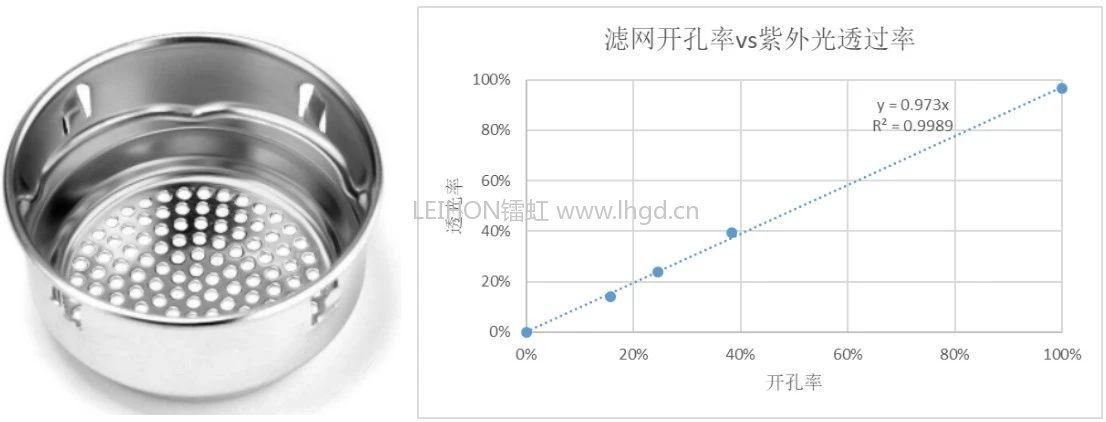 滤网开孔率与紫外光透过率的关系